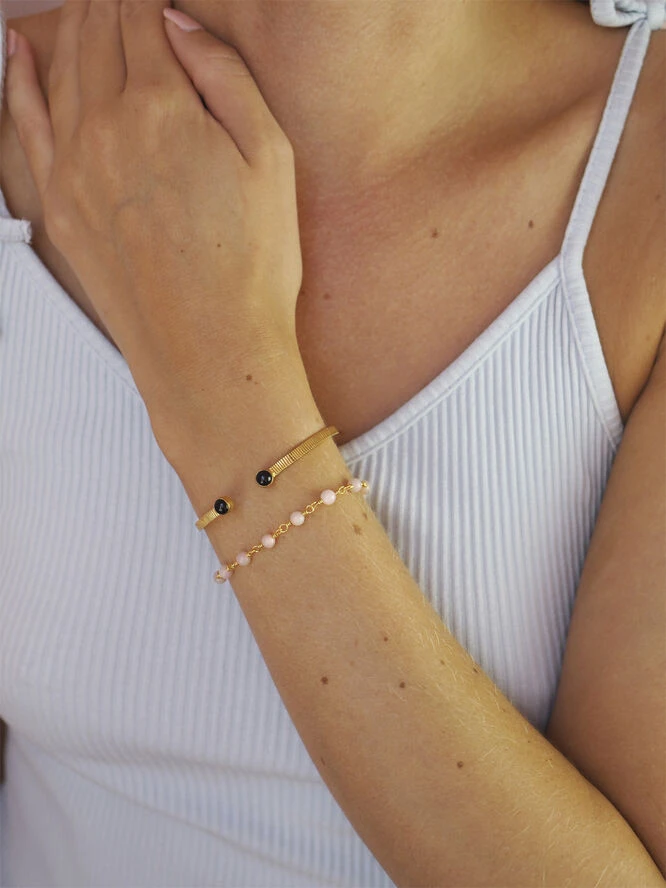 Det feminine armbånd i forgyldt sterling sølv er fremstillet med smukke viklinger og er sat med røg kvarts. Armbåndet tilhører Carré Archive kollektionen, der indeholder et væld af klassiske Carré smykker sat med farverige ædelsten.