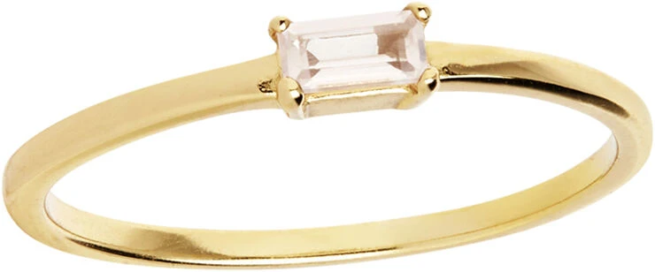 Den yndige ring i guldbelagt sterling sølv er sat med rosa kvarts. Ringen tilhører Confetti kollektionen, der byder på enkle smykker sat med funklende ædelsten, inspireret af kulørt konfetti.