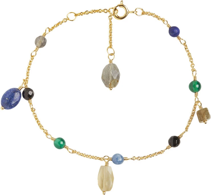 Det farverige limited edition armbånd i guldbelagt sterling sølv er fremstillet med smukke viklinger og er sat med labradorit, sort agat, grøn agat, kyanit, lapis lazuli og citrin. Armbåndet måler 16+1,5+1,5cm. Armbåndet tilhører den ikoniske Gem Candy kollektion, der byder på helt unikke kombinationer af farverige ædelsten i et væld af slibninger.