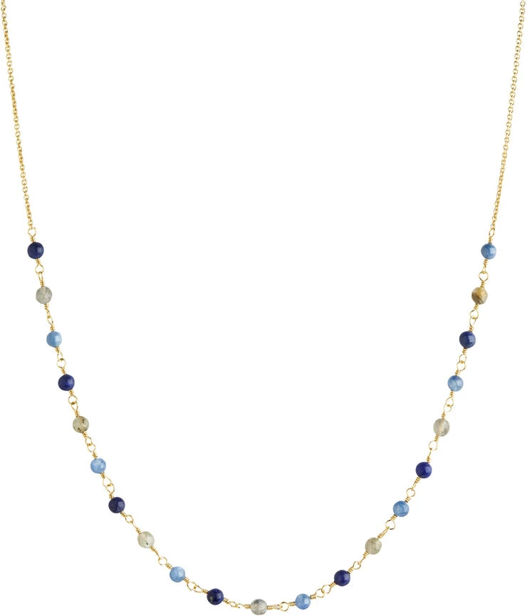 Den fine kæde i guldbelagt sterling sølv er fremstillet med smukke viklinger og er sat med en smuk kombination af kyanit, labradorit og lapis lazuli. Kæden måler 40+2+2cm. Kæden tilhører den ikoniske Gem Candy kollektion, der byder på helt unikke kombinationer af farverige ædelsten i et væld af slibninger.