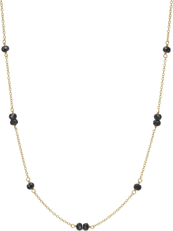 Den betagende kæde i guldbelagt sterling sølv er fremstillet med smukke viklinger og er sat med sort spinel. Kæden måler 35+2,5+2,5cm. Kæden tilhører den ikoniske Gem Candy kollektion, der byder på helt unikke kombinationer af farverige ædelsten i et væld af slibninger.