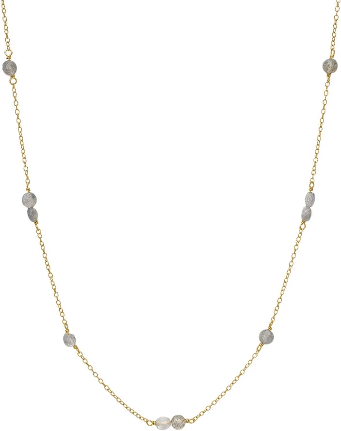 Den betagende kæde i guldbelagt sterling sølv er fremstillet med smukke viklinger og er sat med labradorit. Kæden måler 35+2,5+2,5cm. Kæden tilhører den ikoniske Gem Candy kollektion, der byder på helt unikke kombinationer af farverige ædelsten i et væld af slibninger.