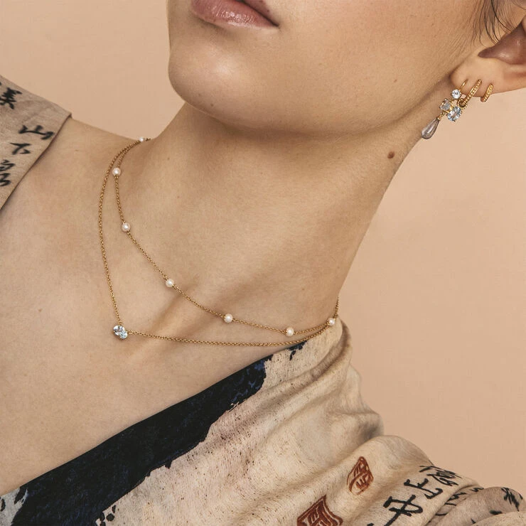 Kæde i guldbelagt sterling sølv sat med en ovalslebet blå topas. Kæden måler 38+2,5+2,5cm. Kæden tilhører Gem Candy kollektionen, der byder på unikke kombinationer af farverige ædelsten i et væld af slibninger.