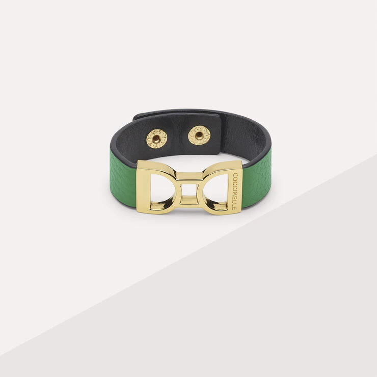 Lækkert Coccinelle skindarmbånd med Coccinelles ikoniske Arlettis spænde på fronten. Lukkes med trykknap.