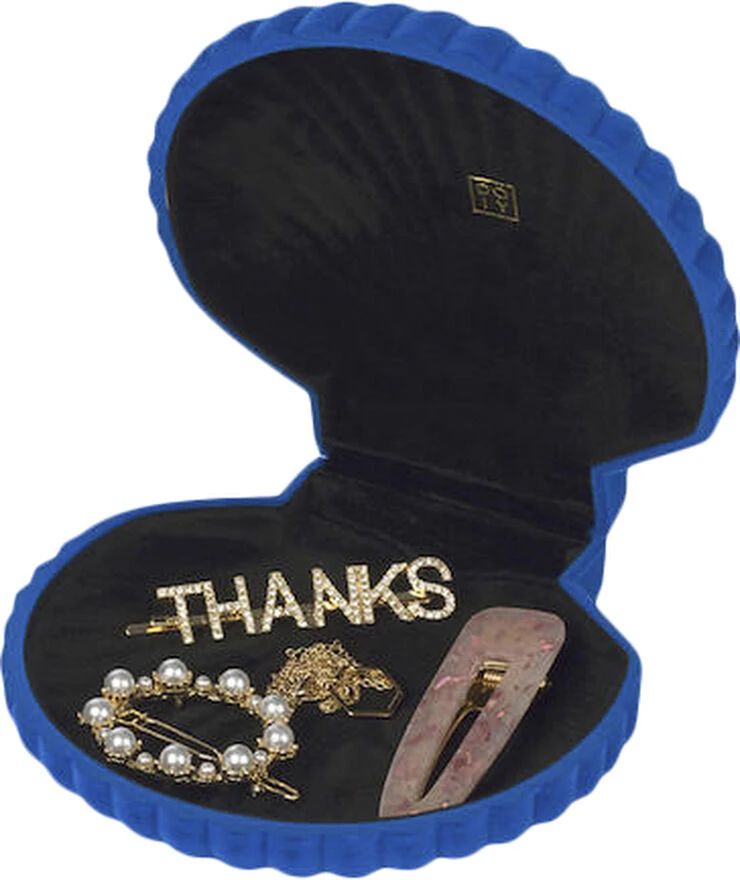Velour smykkeskrin formet som en musling. Den skjuler og opbevarer din mest dyrebare skat ligesom en gemt perle på havets bund.
