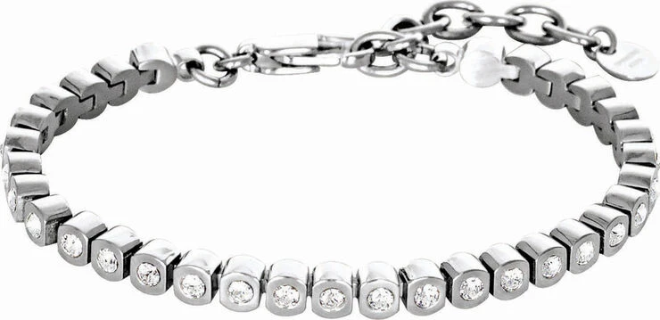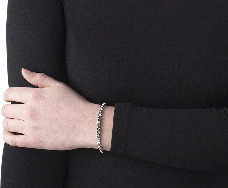 Smalt og feminint tennisarmbånd i stainless steel med swarovski elements.