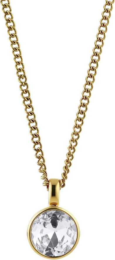 Klassisk og feminin guldbelagt halskæde med solitairevedhæng med swarovski elements. Længde 40 cm + forlængerkæde.