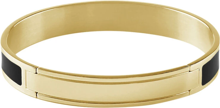 Metalarmring med kliklås, håndfarvet emaljeindsats og monogram.