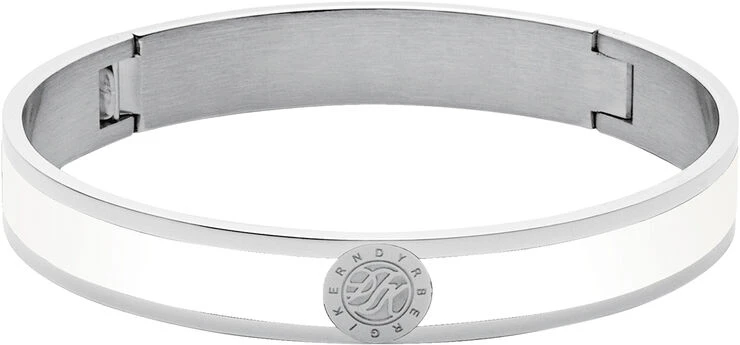 PENNIKA – enkel, moderne, classy. Dette polerede stålarmbånd med ilagt resin emalje indlæg er en klassiker i vort sortiment og vi har det i flere farver. Kun dekoreret med et diskret monogram på fronten og en stribe farvet emalje fremstår dette armbånd elebgant og tidløst. Til kvinden uden alder. Armbåndet åbnes let ved et let tryk på den diskretet fjederlås bagtil. Fåes i to str. Her vist i sølvpoleret finish og hvid emalje.