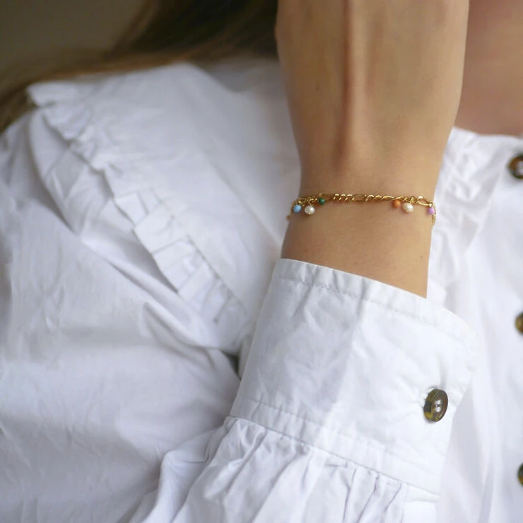 Om smykket- Vores Willa Bracelet er en smuk forgyldt kæde med små farverige detaljer af emalje og perler. Armbåndet gør sig smukt på håndleddet og giver dit look en ekstra feminin og farverig detalje. ____________