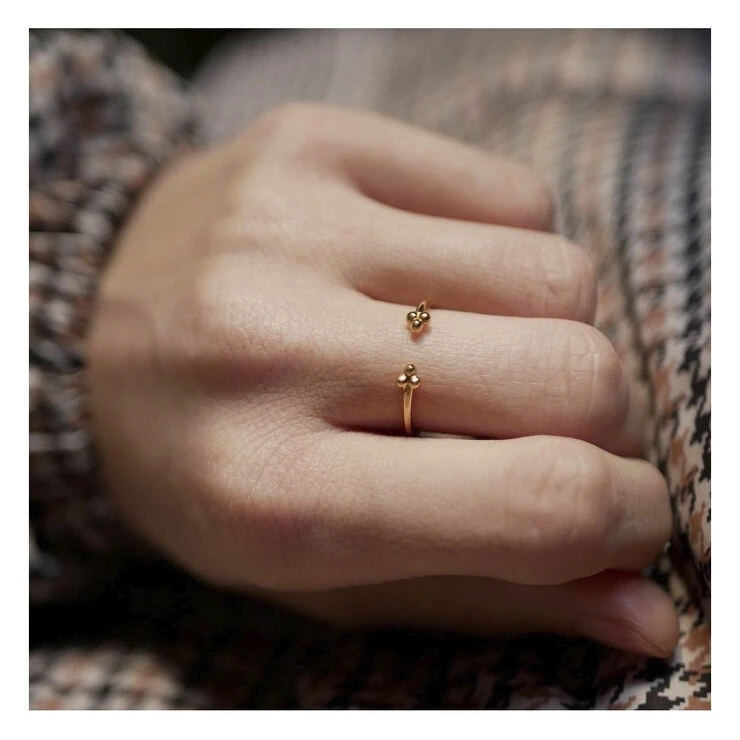 Om smykket:Vores Flower Ring er enkel, med 3 fine kugler i begge sider af åbningen. Den åbne ring er adjustable, og giver mulighed for at bruge den på flere fingre. Brug den alene eller kombiner den med andre af vores ringe.___________Color : 925S/GP