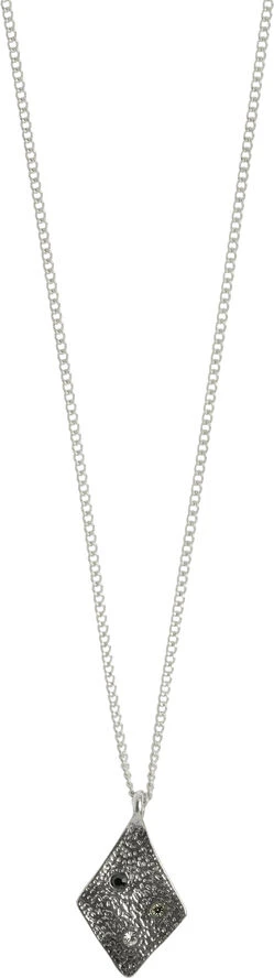 Forsølvet halskæde med rhombus vedhæng med farvede krystaller i sort, hæmatit og krystal. Vores rhombus kollektion er inspireret af de arkitektoniske linjer i det københavnske bybillede.