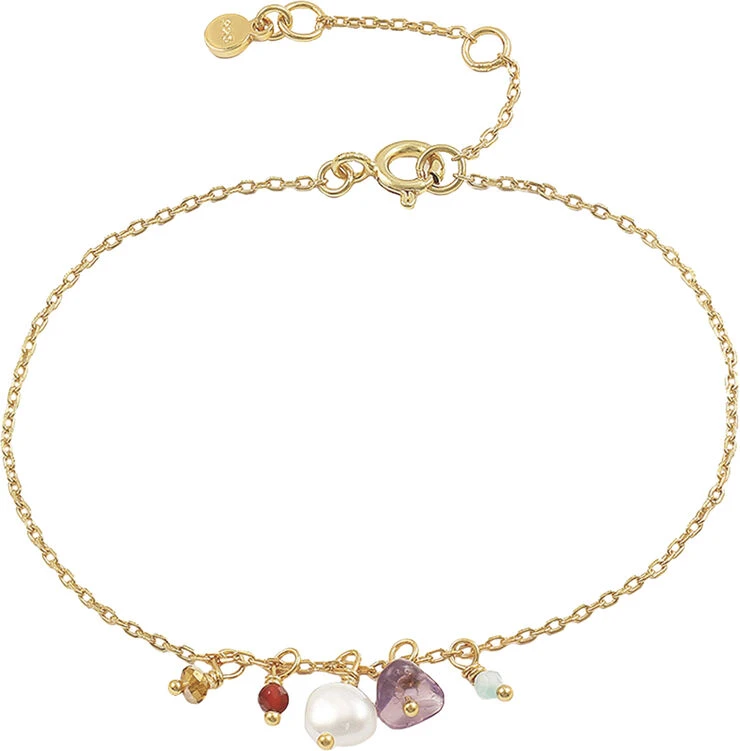 Sterling sølv forgyldt med 18 karat guld og ferskvandsperle. Længde: 16 cm + 3 cm flex