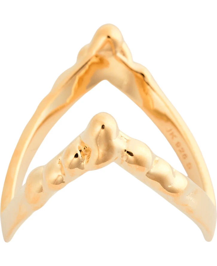 V ring med et drippy design i 18 karat forgyldt sterlingsølv. Ringen måler ca. 2,4 mm i bredden.