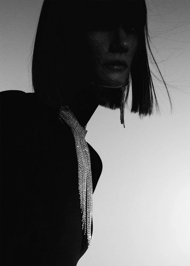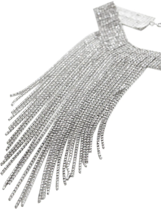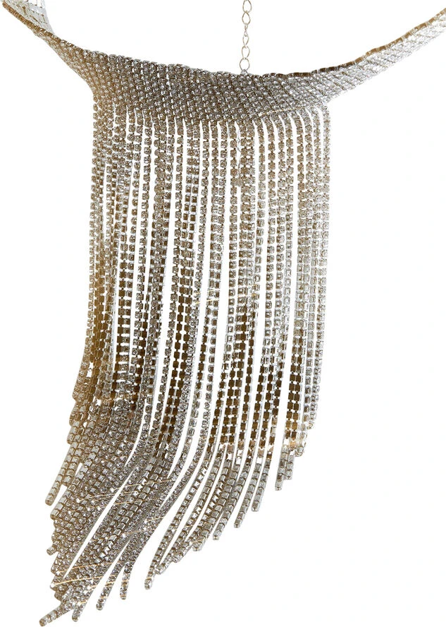 Faceted crystals, choker style, waterfall design, 30 cm long, zip and carabiner fastening, extension chain 10cm, party and events collection.