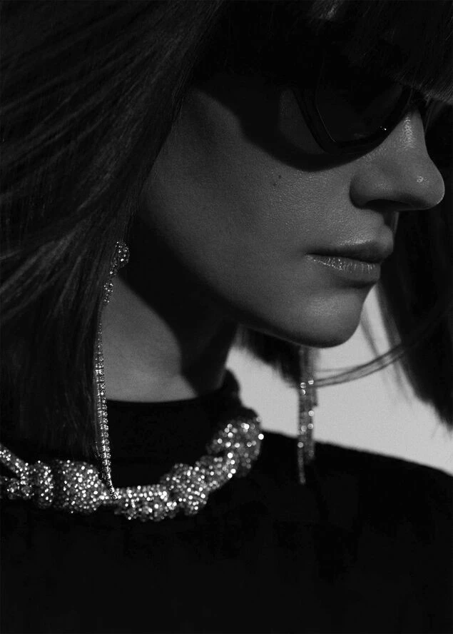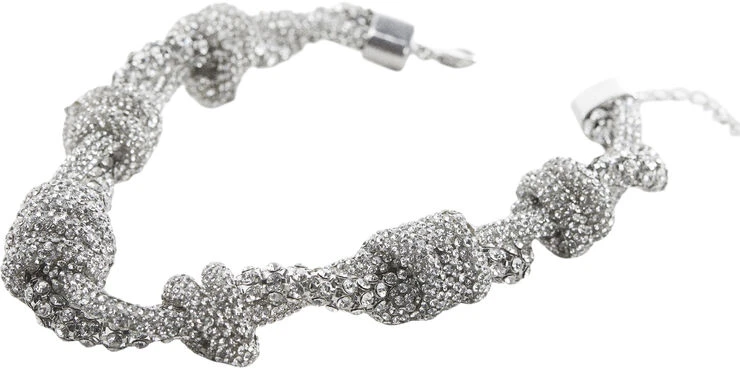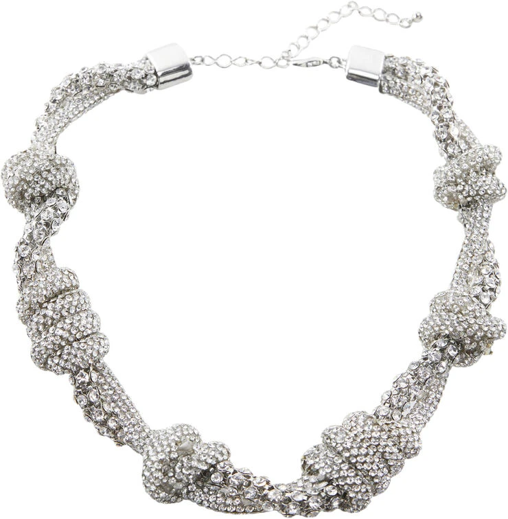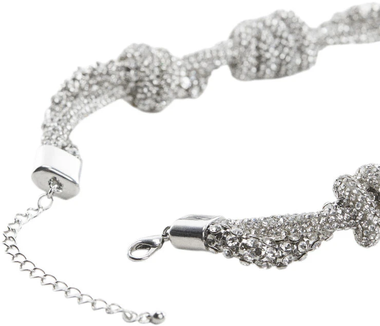 Faceted crystals, decorative knots, zip and carabiner fastening, extension chain 8 cm, party and events collection.