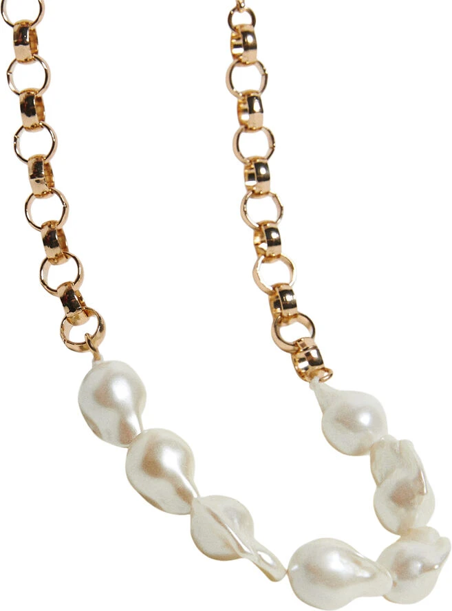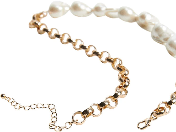 Chain design, pearl-effect details, metal carabiner keychain, party and events collection.
