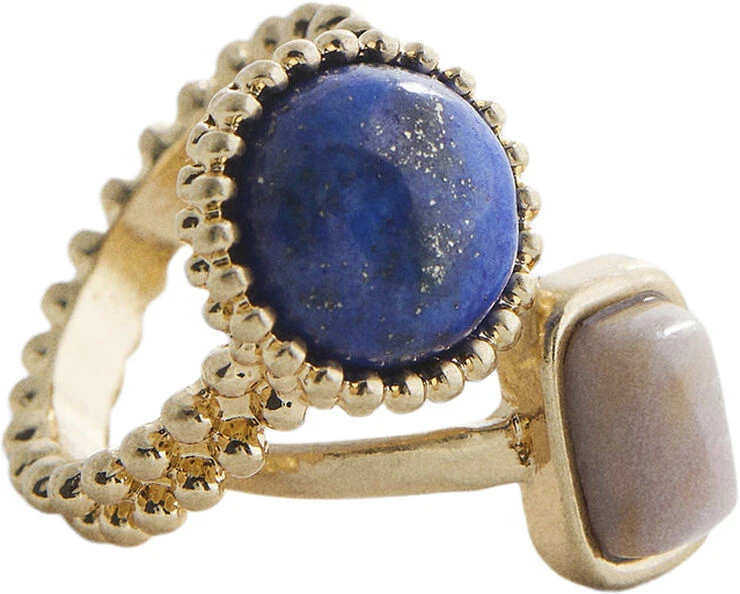 Combined design, semiprecious stone detail, natural stones, designed to be worn on the little finger or the first section of the finger.