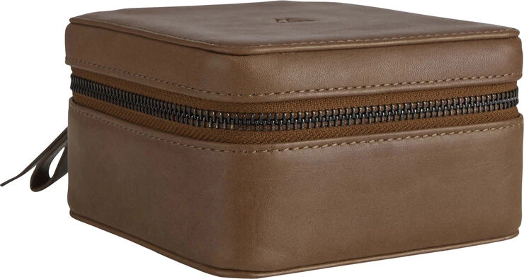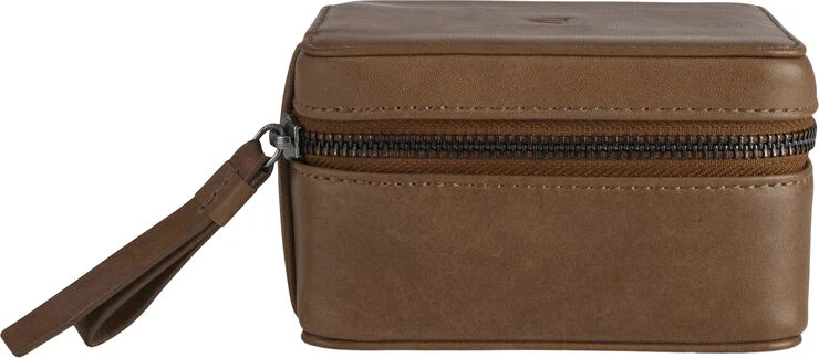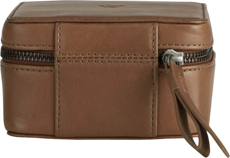 DawnMBG Jewelry Box, fra Markberg. Smykkeskrin i antik naturskind med tre indvendige rum. Holder til fingerringe og tre løse lommer. Lukkes med lynlås. Mål: 7x12x12 cm For: 100% bomuld