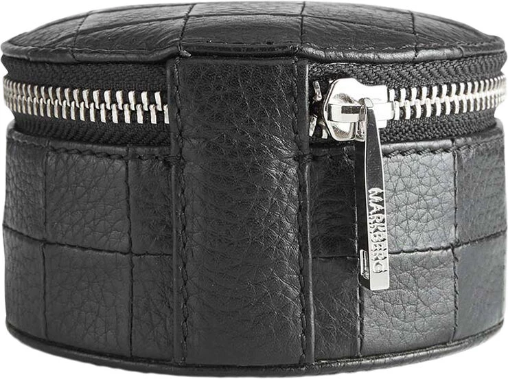 LovaMBG Jewelry Box fra Markbergs Upcycled. Lækker smykkeboks lavet af affaldskind fra produktionen, som giver et grafisk patchwork look. Lukkes med lynlås. Indeholder en tyk smykkepude til ringe, samt 3 flade smykkelommer til kæder mm. For: 100% bomuld.
