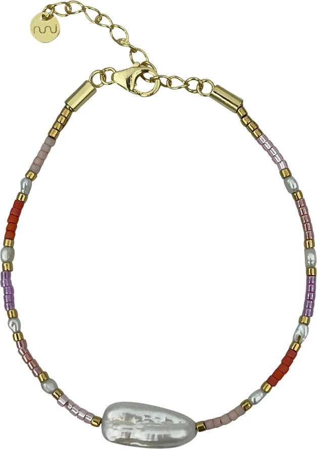 Hndlavet armbnd med Ferksvandsperler, Barok ferskvandsperle, glasperler og forgyldt sterling s¿lv