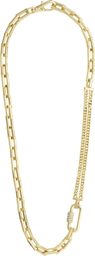 BE the best version of yourself! Med den guldbelagte halskæde fra Pilgrims BE-kollektion kan du skabe et effortless statement look og vise hele verden, hvem du er. To forskellige chains en chunky square cable chain og en twin curb chain samles i asymmetrisk uniqueness i en karabinlås med shiny krystaller. Sæsonens statement piece! Halskæden måler 43 cm og kan justeres i længden.