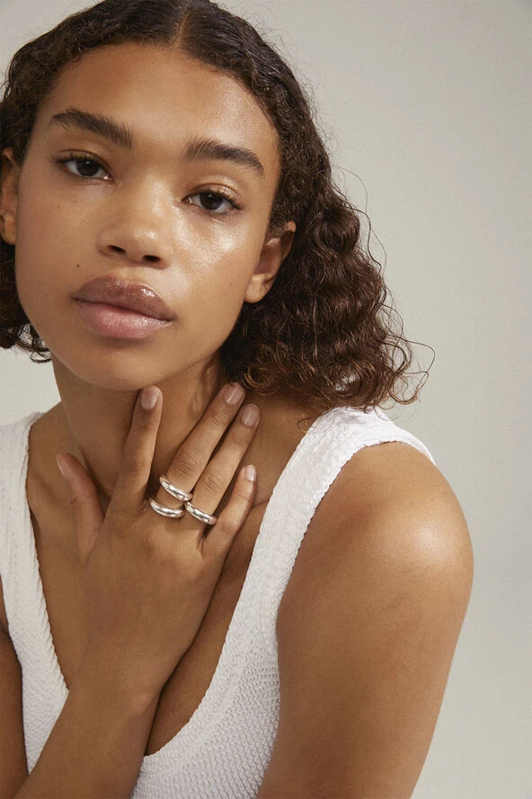 Sæsonens key piece til din smykkesamling: sølvbelagt 3-i-1 ringsæt fra Pilgrims BE-kollektion. Ringenes minimalistiske udtryk samt stilrene, klassiske look henter inspiration fra Pilgrims rødder i den nordiske designtradition. Bær ringene samlet i et stacked look, eller fordel dem på din hånd one-by-one. Fremhæv ringenes shiny og smooth overflade med lakerede nails i playful colours.