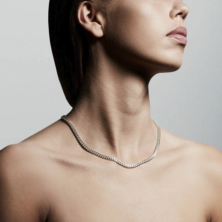 Udforsk din identitet, og vis din indre styrke med en klassiker, der har et råt twist. Med den sølvbelagte halskæde fra vores Classic-kollektion får du et panser-facet-look, der giver ethvert outfit en exceptionel coolness. Kæden måler 40 + 9 cm.