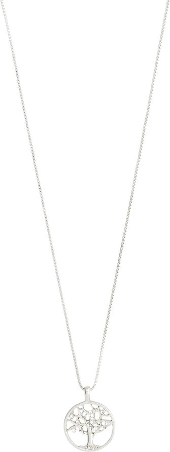 Feel connected med den sølvbelagte coin-halskæde fra Pilgrim. Halskædens runde vedhæng bærer symbolet for Livets Træ og er dekoreret med shiny Preciosa-krystaller. Et smukt og eviggyldigt piece, som bliver dit all-time favourite item. Oplagt til et layered look, hvor de små krystaller vil lyse i solstrålernes skær, eller som et enkeltstående piece til din style. Halskæden måler 40 cm med en 9 cm forlængerkæde, er et recycled item og er dermed lavet af min. 75 % genanvendt materiale.