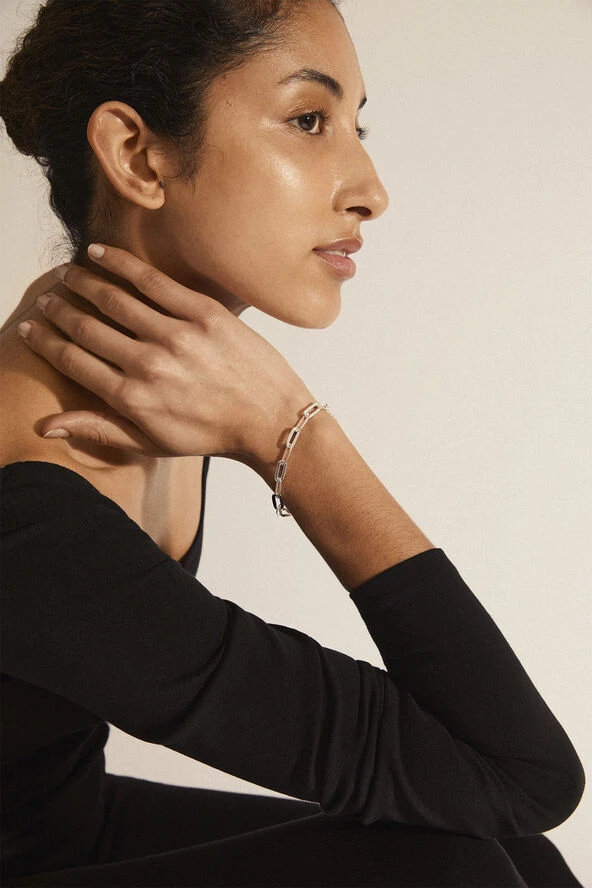 Kindness is the new cool! Tilføj ekstra coolness til dit outfit med det sølvbelagte armbånd fra Pilgrims Kindness-kollektion, der er lavet af 75 % genanvendt materiale. Armbåndet har et luftigt cable chain-design, der giver en feminin lethed til det rå og industrielle look. Perfekt basic piece til at give dine vinter styles minimalistisk edge.