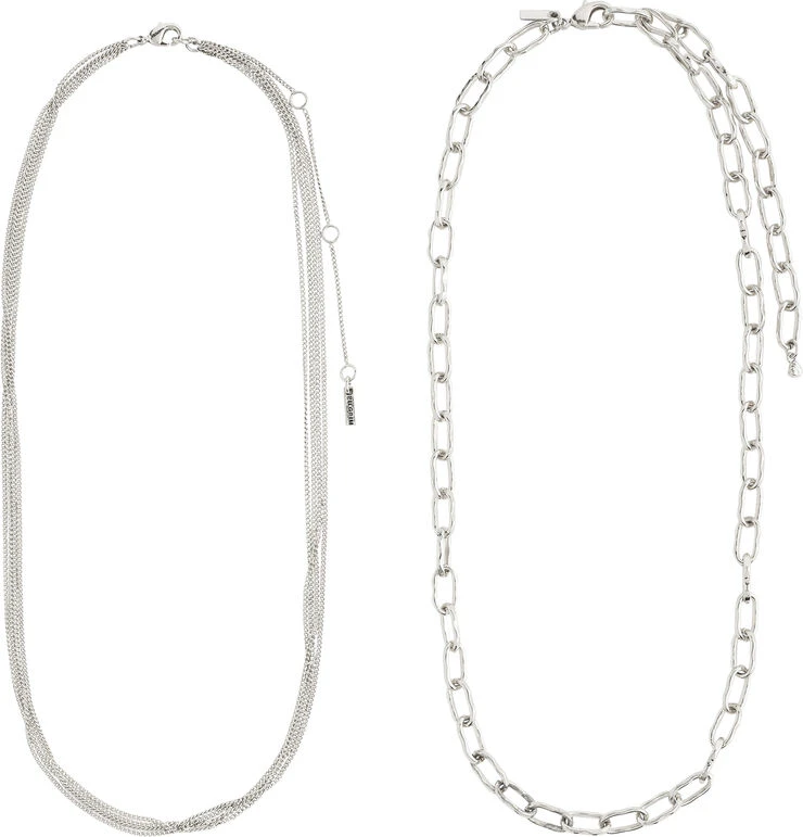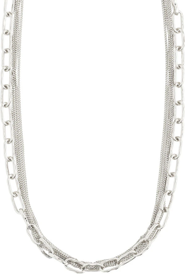 Discover the beauty of diversity med de mange sølvbelagte halskæder fra PAUSE-kollektionen. Den luftige cable chain har et handcrafted, rustikt look, som komplementerer de slanke curb chains, der hænger i lag af seks kæder. Bær dem hver for sig eller sammen for et trendy, layered look. Halskæden måler 40 cm + 9 cm forlængerkæde og er et recycled item, der er lavet af min. 75 % genanvendt materiale.