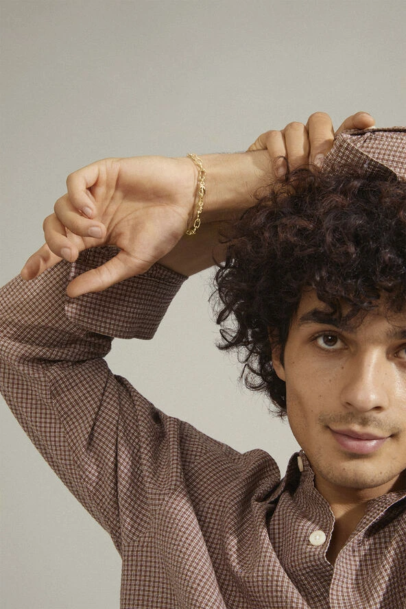 The power of pause. Guldbelagt chain-armbånd fra Pilgrims PAUSE-kollektion. Luftige cable chain links med rustikt præg giver armbåndet et trendy, handcrafted look, der fungerer perfekt til stacking med andre lænker og bangles. Style til sommerbrune arme og mixn match med dine favourite pieces for et personalized statement. Et recycled item, der er lavet af min. 75 % genanvendt materiale.