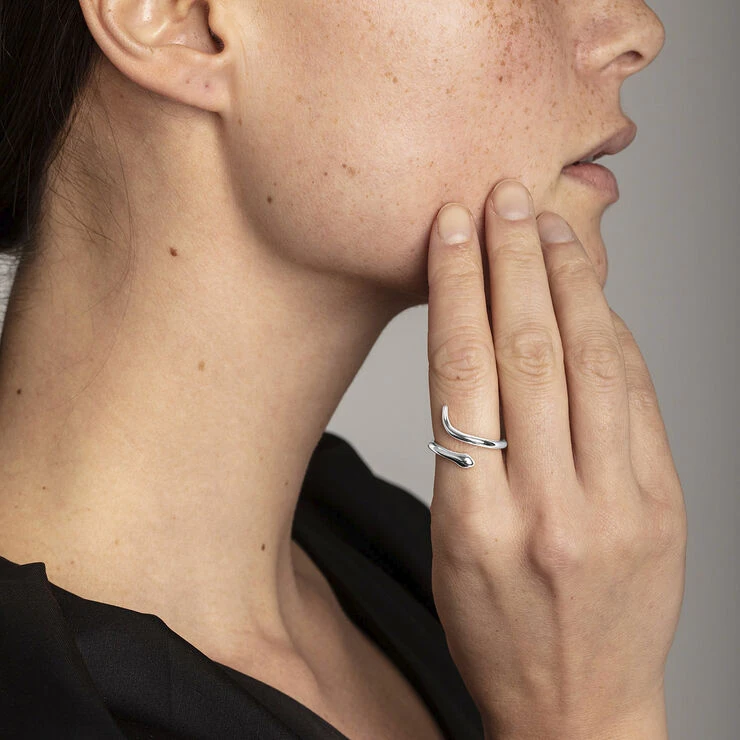 Smuk sølvbelagt ring, der snor sig om din finger. Den stiliserede slanges bløde bevægelse og afrundede form giver et feminint udtryk, der understreges af det blanke metal. Denne ring er en klassiker med referencer til den skandinaviske designtradition og den nordiske mytologi. En ring, der kan følge dig trofast gennem hele livet.