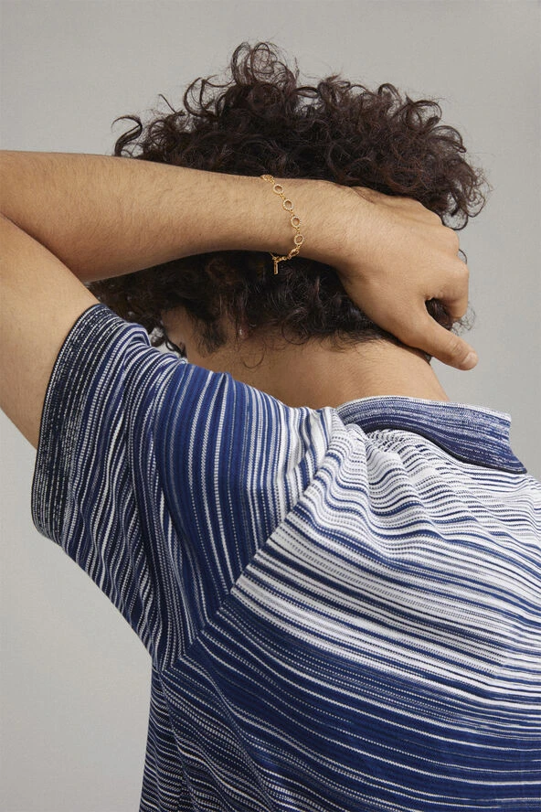 Sparkles for spicing it up! Guldbelagt armbånd med cirkulære led dekoreret med Preciosa-krystaller. Et classy piece, der består af 12 halo-vedhæng bedazzled med sparkling krystaller. Style armbåndet til dine bedste party oufits og fancy ocassions, hvor elegance & glam er keywords. Er lavet af min. 75 % genanvendt materiale.