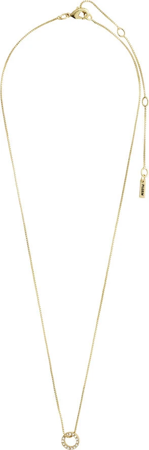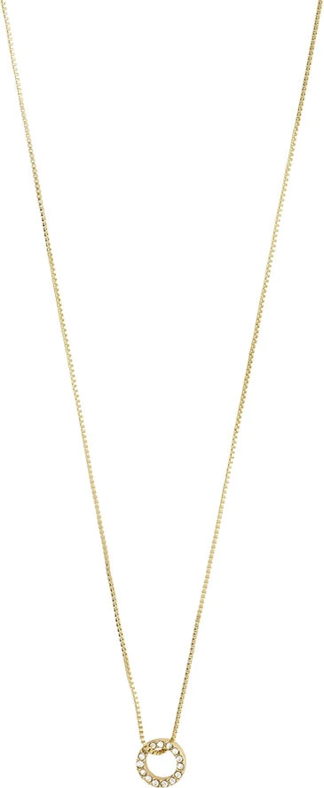 Circular shine! Guldbelagt halskæde fra Pilgrims Rogue-serie med fint, cirkulært halo-vedhæng med Preciosa-krystaller, der tilføjer ekstra glam og shine. Det lille cirkel-charm er fuld af symbolik om evighed, venskab og tætte relationer. Lad den være a special gift til en, du holder af, eller gør den til din egen all-time favourite. Den slanke box chain måler 40 cm + 9 cm forlængerkæde.