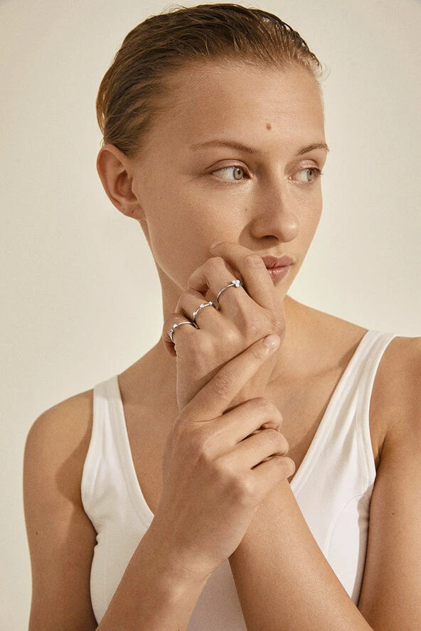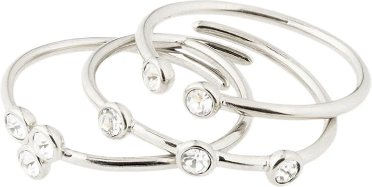 Pilgrim SILVER-PLATED KAMARI STACKABLE RINGS W/ CRYSTALS, 3-IN-1 SET