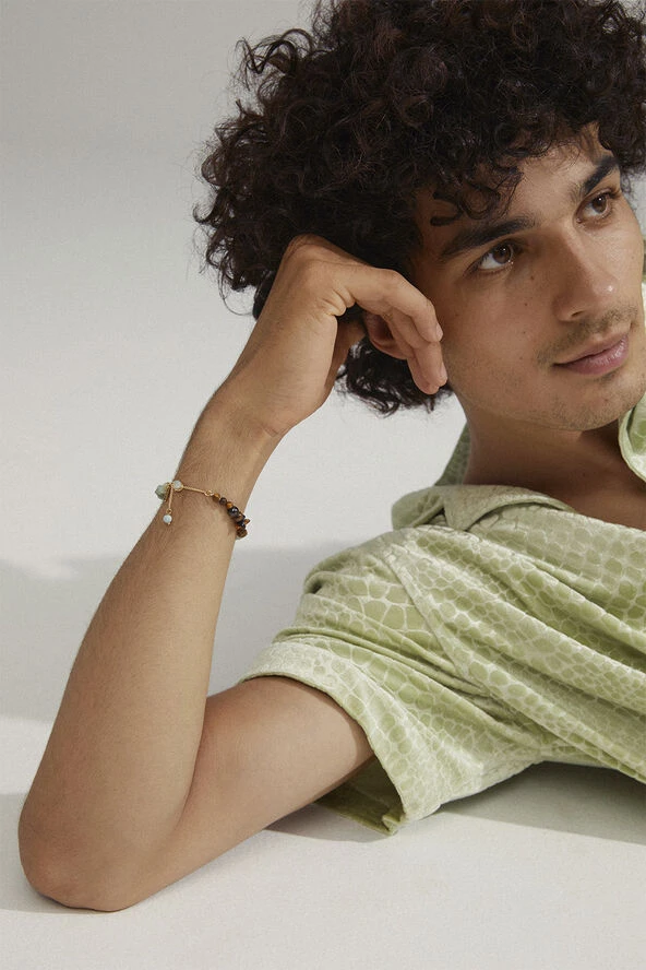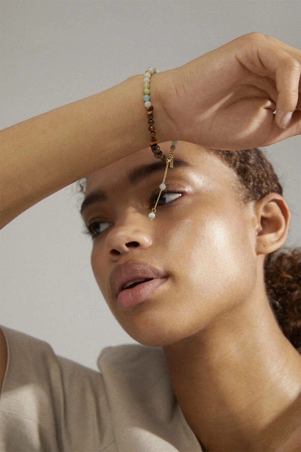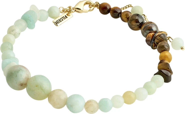 You. Can. Do. It. Pilgrims Soulmates-armbånd bliver med garanti sæsonens favourite piece. Armbåndets to halvædelsten, amazonit og tigerøje, repræsenterer energierne mod og selvværd to egenskaber, der komplementerer hinanden så fint både i farve og mening. De mørke, gyldne tigerøje-sten i kontrast til de lyse, turkise amazonit-perler giver armbåndet et smukt, autentisk præg, der sætter prikken over iet til dine everyday looks.
