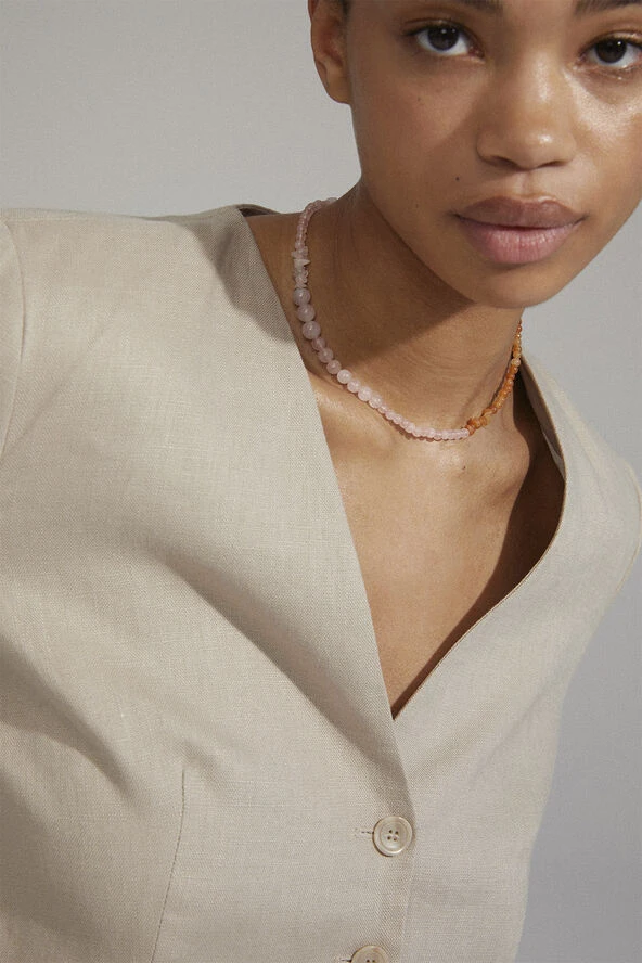 Love gives you strength, strength is to love. Halskæden fra Pilgrims Soulmates-serie er sammensat af ægte rosenkvarts og rød aventurin, som tilsammen repræsenterer energierne kærlighed og styrke. Stenenes rosa og orange nuancer er et match made in heaven og sender tankerne hen på smukke solopgange og nature wonders. Byd en ny dag velkommen, lad kærligheden flyde, og tro på dig selv. You can do it! Halskæden måler 38 cm + 12 cm forlængerkæde.