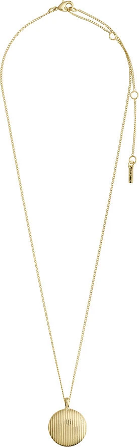 Make it yours! Guldbelagt coin-halskæde med medaljon, der har en riflet og en glat side, så du kan vælge, hvilken style du ønsker til dit outfit. Smuk i al sin enkelhed og indbyder til, at du kombinerer med andre chains og accessories for et personligt look. Gå dagen i møde med dit nye favourite item. Halskæden er lavet af min. 75 % genanvendt materiale og måler 38 cm + 9 cm forlængerkæde.