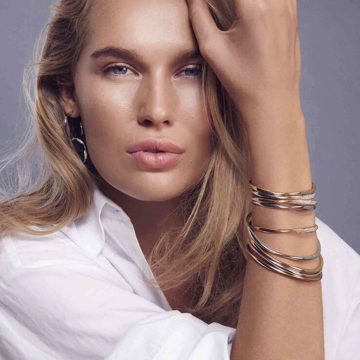 Cetara er en smykkekollektion fra Sif Jakobs Jewellery, der omfavner trenden for bløde, organiske smykkeformer. Dette sortiment fejrer skønheden i sølv og guld med sine enkle designs fri for sten eller andre detaljer. Kollektionen er perfekt til stacking, hvilket giver dig flere muligheder for at style dine smykker. Bangle i rhodineret sterlingsølv 925 med blankpoleret overflade og facetslebne hvide zirkoner.