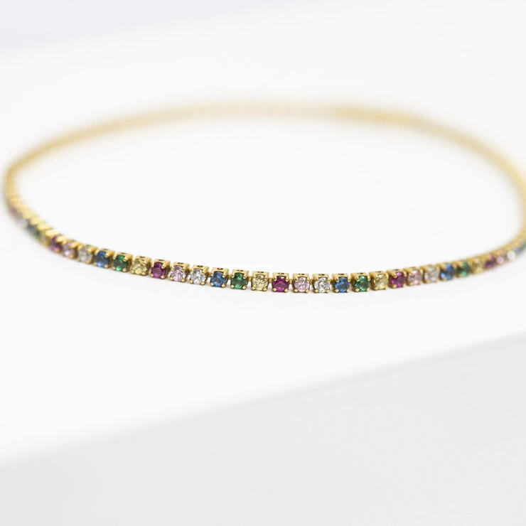 Ellera-kollektionen fra Sif Jakobs Jewellery er sparklende og enkel og står for elegance og glam til overkommelige priser. Armbånd i sterlingsølv 925 forgyldt med 18 karat guld med blankpoleret overflade og facetslebne multifarvede zirkoner.