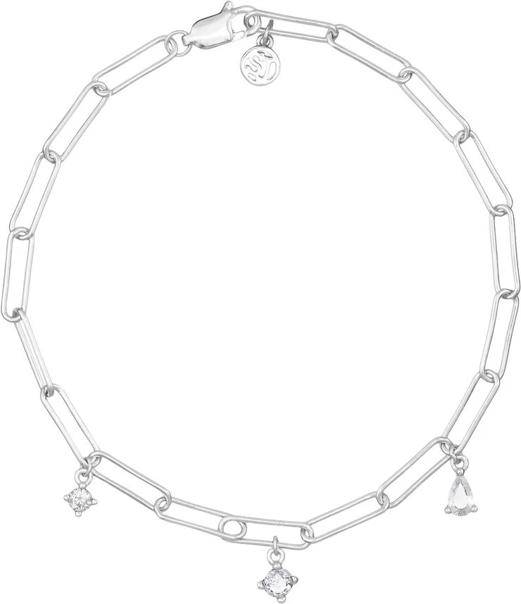 Sif Jakobs Jewellery Rimini-kollektionen præsenterer smukt sarte, klassiske pieces med farver og spændende sparklende cubic zirconia-former. Rimini er den perfekte balance mellem nye klassikere og lige på trend pieces. Armbånd i rhodineret sterlingsølv 925 med blankpoleret overflade. Dekoreret og håndsat med hvid dråbe, marquise og runde zirkoner.