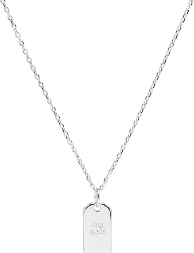 Denne cool halskæde har vedhæng med teksten GIRLBOSS indgraveret og giver et fedt statement. Halskædens kæde er smal og giver et feminint udtryk.