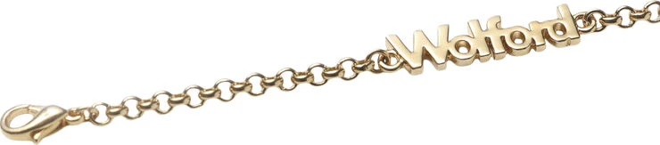 Kæde fra Wolford i den smukkeste kvalitet belagt med 24k guld. Kæden har en lille lås i hver ende samt de fineste logodetaljer. Brug kæden som en klassisk halskæde eller som kæde til dit mundbind.